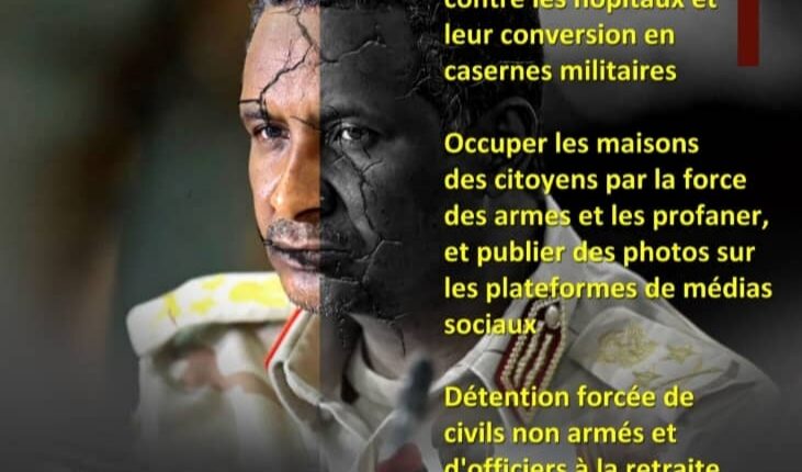 Ces pratiques documentées que le citoyen soudanais vit, instant après instant, devraient être classées par la communauté internationale, si elle est neutre dans cette guerre, comme groupe terroriste, car elle pratique le terrorisme et viole l’honneur, brise les prisons et démobilise les criminels condamnés pour diverses crimes, détruit et brûle des églises et des installations publiques, et arrête des civils sans défense. Officiers à la retraite, ainsi que violer des filles mineures, occuper les maisons des citoyens et les documenter et les publier sur les plateformes de médias sociaux, alors pourquoi la communauté internationale est-elle silencieuse sur ces pratiques, et pourquoi la mission des Nations Unies « UNITAMS dirigée par Volker Pierce » est-elle silencieuse sur ces violations ?