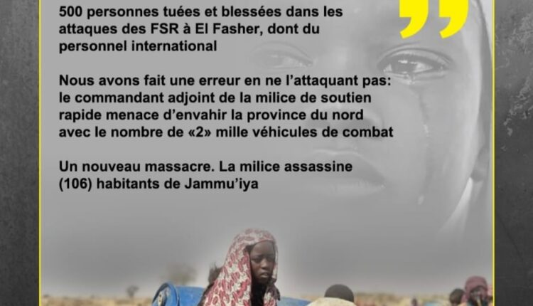 500 personnes tuées et blessées dans les attaques des FSR à El Fasher, dont du personnel international